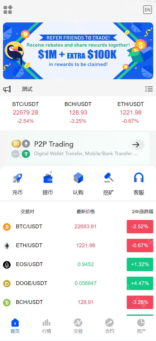 修复K线失效问题,系统8种语言,支持币币合约交易、新币申购、智能挖矿等功能