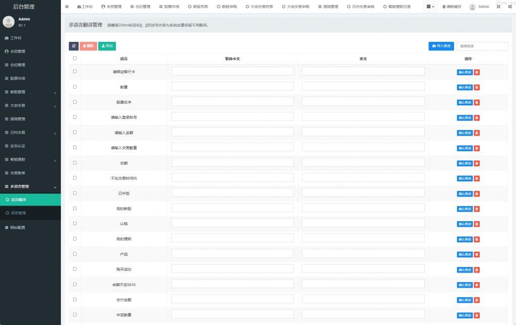 前端语言后台添加翻译,支持大宗交易,新股认购,产品理财等功能