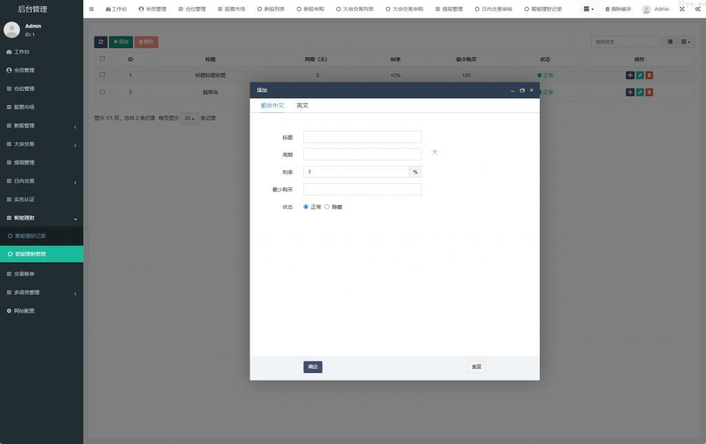玖福源码 » 海外股票系统/多语言股票/大宗交易/新股认购/产品理财