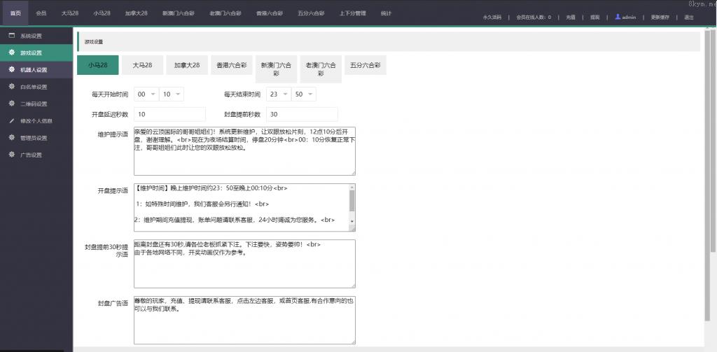 玖福源码 » 新版多语言28系统 时时彩游戏 海外cp系统 28游戏 28竞猜源码 批量预设开奖 预设开奖